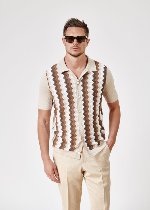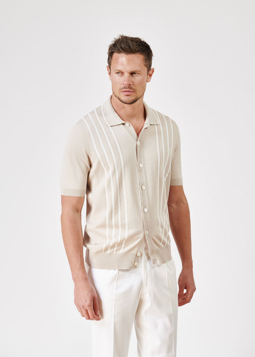 Tout d’abord, nous choisissons le tricotage historique pour ses cravates tricot : le « crunchy kit » à motif grain de riz. Le tricotage des mailles est dense et épais, ce qui garantit un beau tombé et limite les risques de déformation.