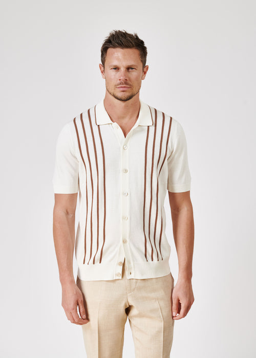 Concernant les motifs, trois sont courants pour une cravate tricot : les unis, les pois et les rayures horizontales. Si les deux premiers se portent aisément, la rayure a tendance à vraiment attraper le regard, surtout si elles sont larges.